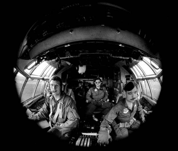 lens provides a different look at the crew of a C-130 transport plane bound for