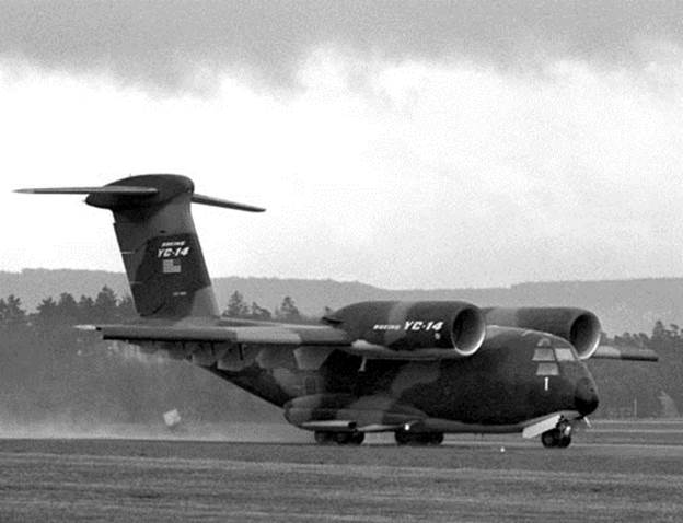 flight. The YC-14, Boeing's possible successor to the C-130 Hercules transport,