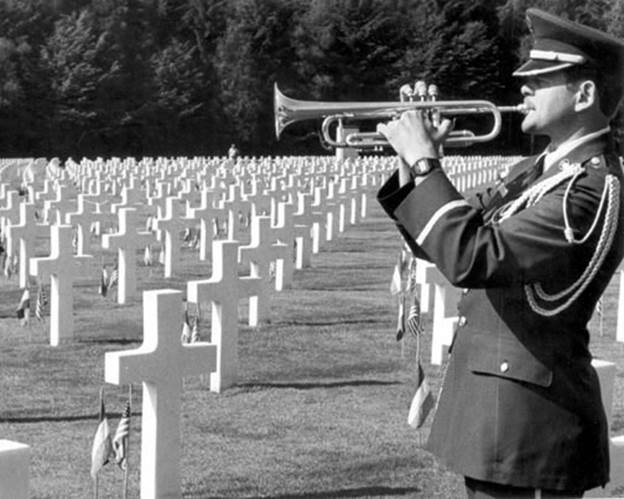 Force Band from Ramstein, Germany, plays Taps during Memorial Day services at